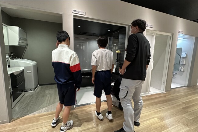 身近な水回りリフォームについての学習では、メーカーショールームに出向き、メーカーのスタッフさんよりダイレクトに水回り商品の特徴などを説明していただいたり、実際の商品に触れて・見て、「リフォーム」は意外と生活と身近な関係である「コト」を体験していただきました。