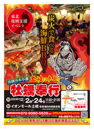 出張カキ小屋 牡蠣奉行がイオンモール土岐に期間限定オープン。開催期間は12/2~12/24までの24日間。