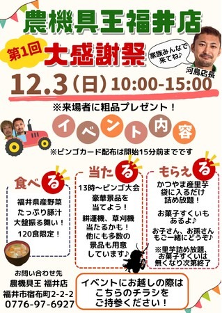 ■農機具王福井店、日頃の感謝を伝える“豪華イベント”を開催!