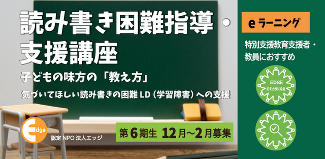 認定NPO法人エッジ(https://www.npo-edge.jp/)はディスレクシアの正しい認識の普及と支援を目的とした特定非営利活動法人として、2001年10月に認定設立され活動しています。