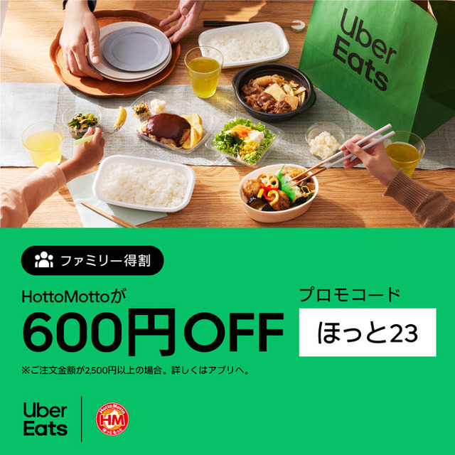 「ほっともっと」では、Uber Eatsで2,500円以上購入し、指定のコードを入力すると、お会計が600円OFFになる『Uber Eatsファミリーキャンペーン』を11月28日(火)より12月18日(月)までの期間限定で実施いたします。