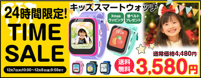 生活雑貨、アウトドア用品、カー用品の企画・販売を行う、三金商事株式会社(本社:大分県大分市 代表取締役社長:田中 新一)が運営するネット通販『MTKSHOP』より、当店オリジナル『キッズモード』搭載の、子どもが楽しく遊びながら学べる『キッズスマートウォッチ』が、楽天MTK SHOP限定で12/7(木)10時から24時間タイムセールを開催!写真・動画・音楽・ゲームなど、全20アプリ搭載でなが~く楽しめます!