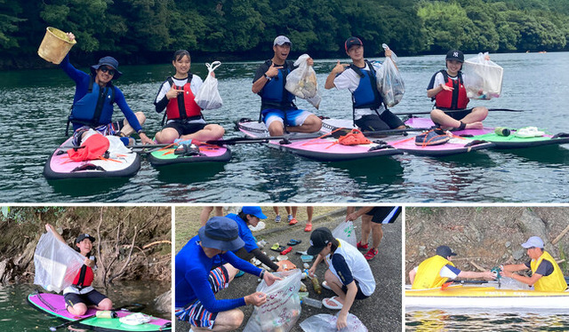 伊勢湾に注ぐ一級河川である「宮川」は、国交省から発表される「水質が最も良好な河川」に何度も選ばれた清流日本一を誇る三重の宝。しかしながらここ2年連続選出されていないという現状を知り、2023年7月に「宮川」の上流にある大台町の三瀬谷ダム湖を高校生と視察しました。実際にSUPやカヌーに乗りプラスチック製品や古いスプレー缶、サンダルなどのごみを回収してみると、ダム付近の入り江にゴミがたまりやすいことがわかりました。