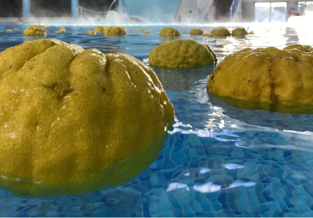 第4弾の“ゴジラ級の「獅子ゆず風呂」”では、最大外周60cm・重さ1kgと特大サイズで、見た目はゴジラの皮膚のようなゴツゴツ感のあるまさに“ゴジラ級”な「獅子ゆず」を期間中で約500個使用します。さらに、約300平方メートル の箱根最大級の湯面積を誇る“神々のエーゲ海”にて開催することで、ご自宅では体験できない“ゴジラ級”規模の「ゆず風呂」を完成します。