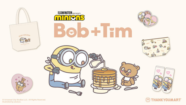 イルミネーションの『怪盗グルー/ミニオンズ』シリーズに登場し、ミニオンの中でもとっても優しくてひとなつっこい性格の「ボブ」と、ボブの相棒であり彼がとっても大好きなくまのぬいぐるみ「ティム」とのコラボレーション雑貨が登場します。