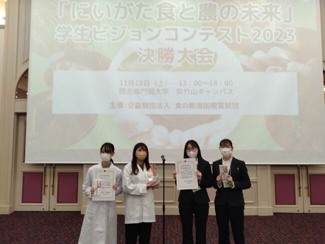 食の新潟国際賞財団主催のコンテスト。今年で2回目。新潟県内の大学や専門学校などの学生が、新潟の食品産業や農業・水産業及び関連産業の課題解決を提案。今年は35件の提案が集まり、11月18日に決勝大会が行われ、受賞者が決定した。