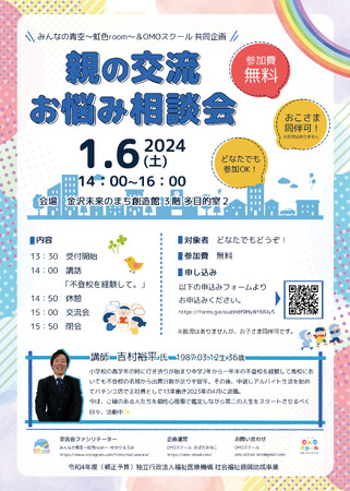 みんなの青空~虹色room~とOMOスクールが協力し、新春イベント『親の交流・お悩み相談会』を開催いたします。