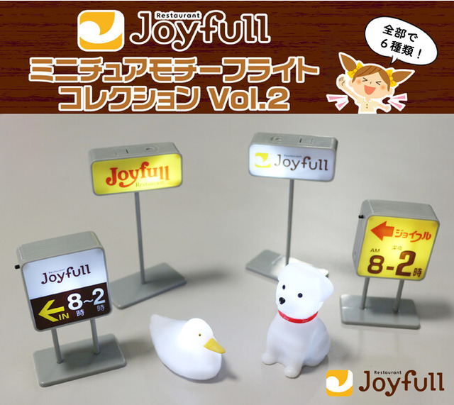 本商品はジョイフル店舗の看板4種と、過去に店内に設置していた動物型のモチーフライト2種を、