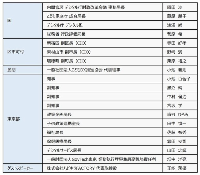 5 「東京こどもDX2025つながる子育て推進会議」(第1回)参加者(敬称略)(予定)