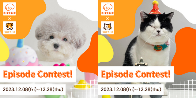 今回開催のエピソードコンテストは、株式会社BITEMEが運営するペットのおもちゃや雑貨をはじめとするペット用品の韓国で生まれた総合ブランド( @biteme.co.kr 及び @biteme_officialjapan )とMOFFME( @moffme_dog / @moffme_cat)のコラボ開催が実現。