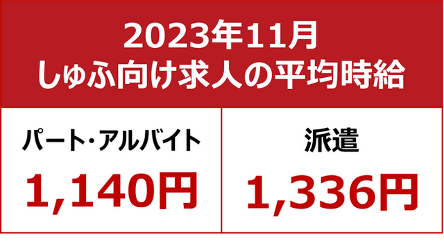 ビースタイルグループで求人サイト『しゅふJOB』を運営する株式会社ビースタイル メディア(本社:東京都新宿区、代表取締役社長:石橋聖文)は、掲載された求人情報の時給データから算出した『平均時給』の2023年11月分を集計しました。