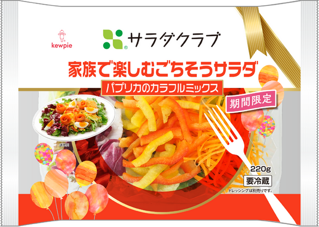 株式会社サラダクラブ(代表取締役社長:金子俊浩、本社:東京都調布市)は、2023年12月16日(土)から2024年1月3日(水)までの期間限定で、「家族で楽しむごちそうサラダ パプリカのカラフルミックス」(220g/税込429円)を新発売します。同時に「家族で楽しむごちそうサラダ トレビスのレッドミックス」(190g/税込429円)も発売します。