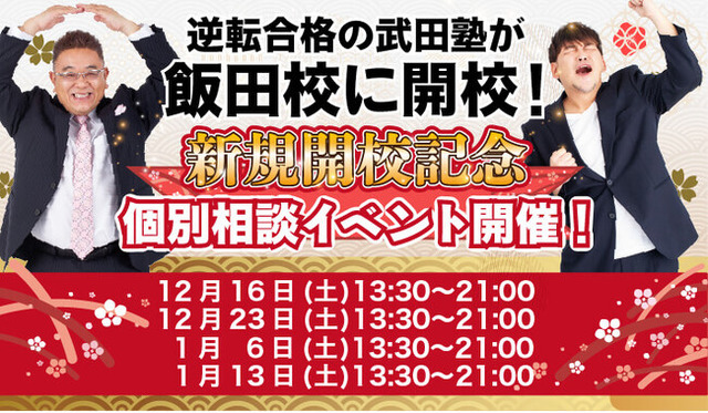 武田塾飯田校の開校を記念して、飯田校では個別相談イベントを実施いたします。
