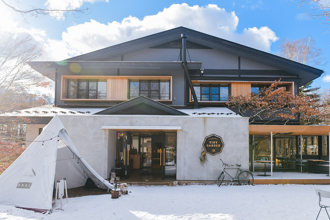 新宿から車で、電車で2時間半。2019年9月、八ヶ岳の麓、蓼科湖畔に佇む「TINY GARDEN 蓼科」はオープンしました。標高1,250m、澄みきった空気と白樺の木々に囲まれた小さな庭には、キャンプ・ロッジ・キャビンの3つのスタイルの宿泊施設、多様な過ごし方を提案するワークステーション施設とともにスタートしたアウトドアウェアブランド「EKAL」のショップ、地元食材を活かしたメニューが並ぶカフェが併設され、日常と非日常が交差する心地良い時間が流れています。