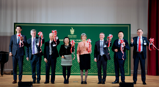 式典には、ジュリア・ロングボトム駐日英国大使、ノーベル化学賞受賞者でスタンフォード大学医学部教授を務めるロジャー・コーンバーグ氏、マルバーン・カレッジ・インターナショナルのジャクリーン・ソー共同創設者兼最高経営責任者、マルバーン・カレッジ東京校のマイク・スペンサー初代校長などが公務として出席したほか、政治・教育・ビジネスの各分野の代表者300人以上が祝福に訪れました。