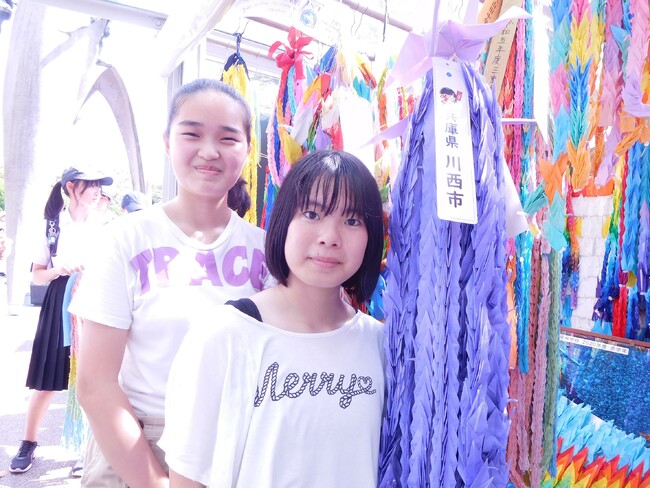折り鶴平和大使の小室さんは、「世界中の一人ひとりが『みんなの笑顔のために自分の力を使う』ということを意識できれば世界は少しずつ平和になるのではないか」などと話し、出野さんは、「平和記念式典で黙とうをした瞬間、全ての人がひとつになり、平和を強く願う思いが会場全体を包み込んでおり、核兵器が二度と使用されない世界を求めるものだと思った。」などと話した。