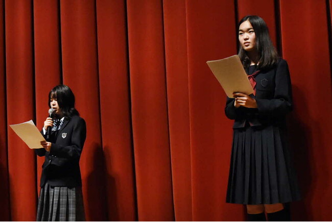 2023年12月6日、川西市のキセラホール(火打)で「折り鶴平和大使のヒロシマ体験報告会」を「人権週間映画会」と同時開催した。公募で選ばれた「折り鶴平和大使」の小室 苺々春さん(おむろ ももは:高校1年生)と出野 穂和奏さん(いでの ひなた:中学3年生)が広島での活動について約100人の前で壇上から報告をした。