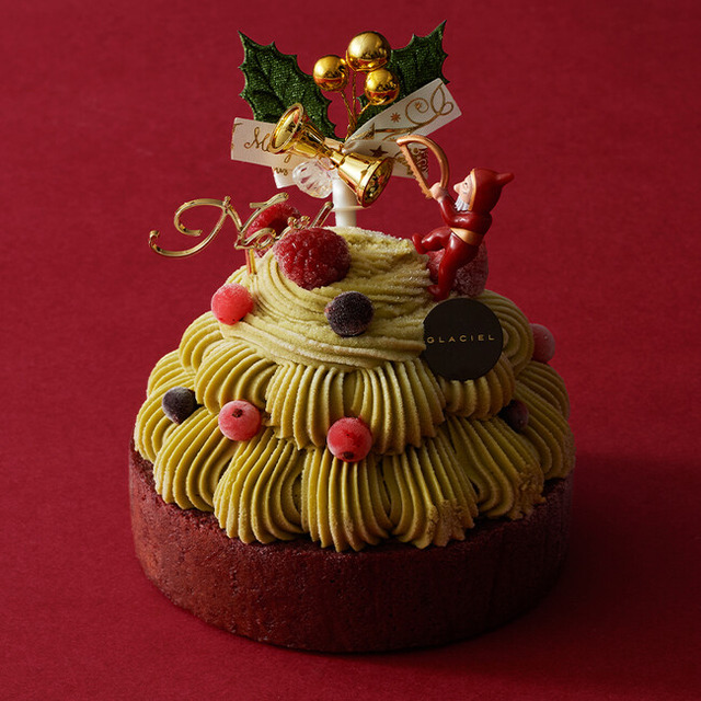 そして、そのグラッシェルより、今年も新作のクリスマス・アイスケーキが登場。クリスマスツリーに見立てた、ピスタチオの味わいが広がるアイスケーキ「サパンドピスターシュノエル」は、見た目も華やかな一品。