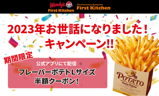 実施内容:当社アプリ会員限定で、フレーバーポテトLサイズを通常価格 430円のところ、50%OFFの 215円でお楽しみいただけるクーポンを配信します。