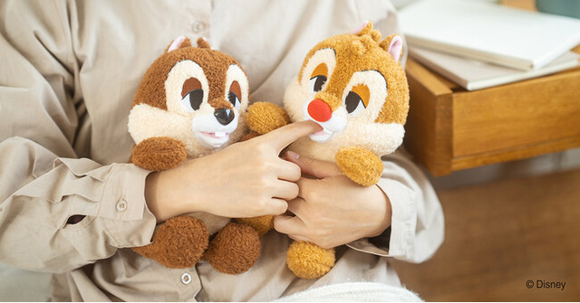 そっと指を差し出すとペットや赤ちゃんが小さな歯でムニムニと柔らかく食む魅惑のしぐさを再現した甘噛みハムハムに、ディズニーシリーズでも人気の、かわいいシマリスのキャラクター「チップ&デール」が仲間入りしました。黒い鼻、歯が中央に一本あるのがチップ、赤い鼻、歯が二本あるのがデールです。