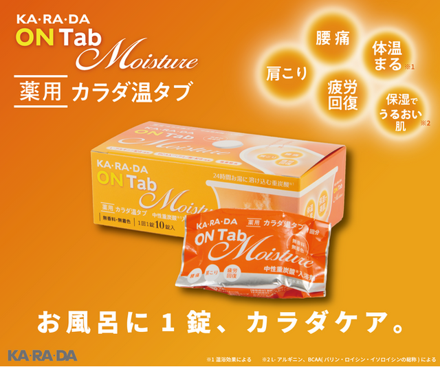 整体×骨盤サロン「カ・ラ・ダ ファクトリー」(以下 カラダファクトリー)を海外・国内に370店舗以上展開する株式会社ファクトリージャパングループ(本社:東京都千代田区、代表取締役会長兼社長(CEO):村田 尋一、以下 ファクトリージャパン)は、オリジナル商品として「薬用カラダ温タブモイスチャー(以下、カラダ温タブm)」を、12月22日(金)よりカラダファクトリー各店にて順次販売を開始します。 *炭酸水素Naによる