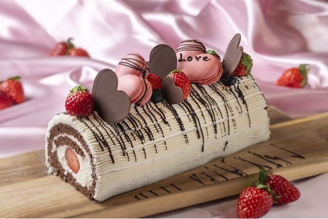 その後は、宴会場へ移動し、ホテルのパティシエのお仕事についてのレクチャー後、実際にパティシエと一緒にスイーツ作りを体験していただきます。スイーツ作りでは、お子さまにコックコートを着用していただき、バレンタインにぴったりなチョコロールケーキやハート形のマカロンデコレーションを体験。クリームやフルーツ等を並べ、ロールケーキを巻いたり、マカロンにチョコペンでデコレーションする等、お子さまが安全に楽しく体験できる内容をご用意しております。