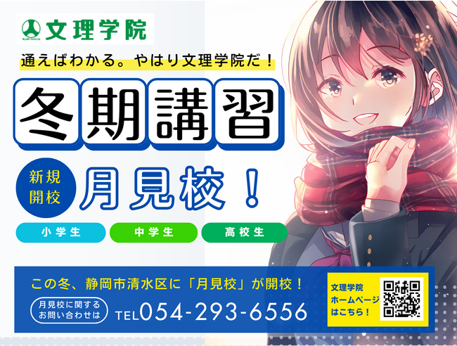 文理学院の静岡市(葵区・駿河区)7校舎には約1000名の塾生が通っています。合格実績(過去3年)は、静岡高・清水東 高123名、静岡東高120名、静岡市立高107名等となっています。2014年3月唐瀬校開校を皮切りに、静岡市へ進出してから2024年でちょうど10年です。記念すべき年に満を持して清水区への校舎展開を開始します。その第1号校舎となるのが「月見校」です。清水区からお通いいただいている生徒とその保護者の皆様から「清水に文理学院を」という強いご要望がありました。この度、ようやく皆様のご期待にお応えする準備が整いました。