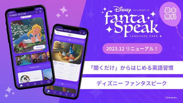 株式会社アルク(東京都千代田区 代表取締役社長:天野 智之、以下アルク)は、ウォルト・ディズニー・ジャパン株式会社監修の英語・英会話アプリ「ディズニー ファンタスピーク」を大幅リニューアルいたしました。基本無料で学べる仕組みや新機能を導入し、「ストーリー」コーナーを大幅にリニューアルしたことで、より多くの方にとって学びやすくなるように、ワクワク感をパワーアップいたしました。