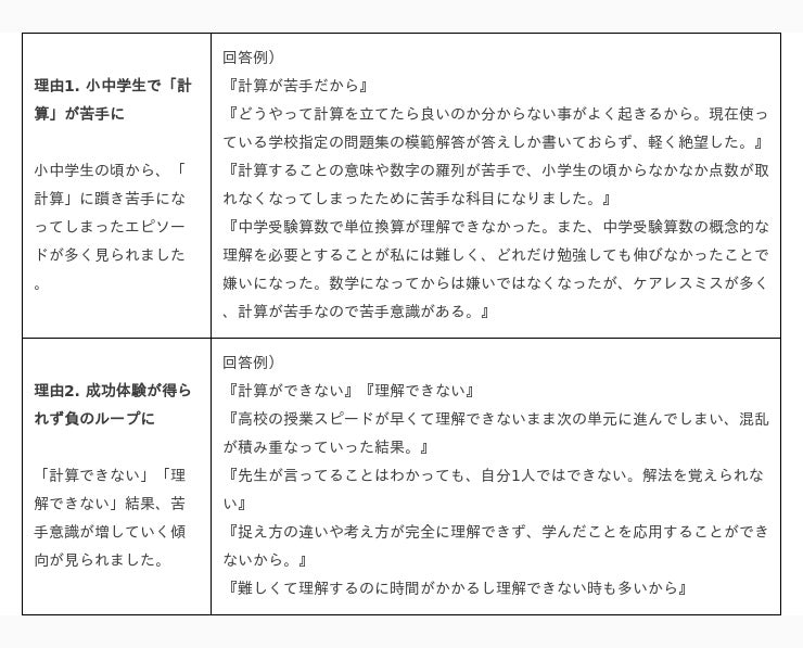 ◆「数学」が苦手・嫌いな理由