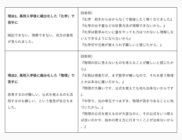 ◆「理科」が苦手・嫌いな理由