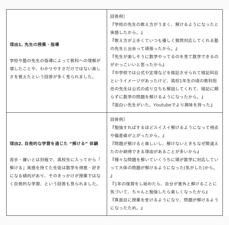 ◆高校生になってから「数学」が得意・好きな理由