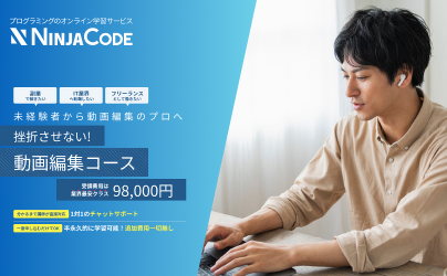 忍者CODEの「動画編集コース」で動画編集者になる為に実践的なカリキュラムをご用意。将来プロの動画編集者になる為に必要なスキルを習得できます。