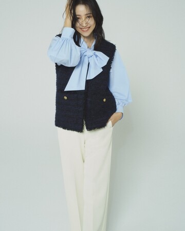 自分らしいドレスアップが楽しめる〈B:MING by BEAMS〉ならではのニューフォーマル。ハレの日定番のツイードアイテムは、きちんと感のあるジャケットセットアップに加え、フリンジを効かせたファンシーなジレが登場します。そして、リボンアレンジを楽しめるボウタイブラウス、ジャカードやサテン素材の展開など、自由なスタイリングを叶えるアイテムを豊富にご用意しました。さらには、ジャケット、ブラウス、パンツの3点がセットになったアイテムも新作が登場します。