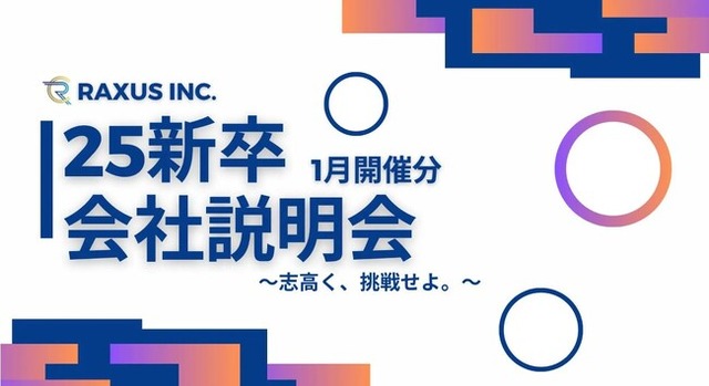 ラグザス株式会社(本社:大阪市北区/代表取締役社長:福重 生次郎)は、2025年卒の学生を対象とした会社説明会(オフライン・オンライン)1月分の日程が決定しましたので、お知らせいたします。