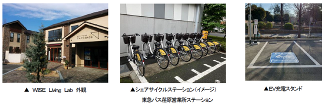 東急が運営する「WISE Living Lab」に、太陽光発電機能を備えたモビリティスポットを設置し、同スポットで発電した電気を東急バスが運営する電動小型シェアモビリティの電力に充当し、余剰電力は「WISE Living Lab」の電力としても利用します。