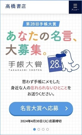 ・WEB応募(名言大賞) https://www.takahashishoten.co.jp/techotaisyo/oubo/meigen/
