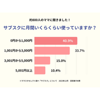 4割強が「0円~1,000円以下」と回答。ママたちの“サブスク”の利用実態が明らかに