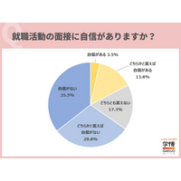 面接に「自信がある」学生は2割に満たない。アピールしたいことは「学生時代に力を入れたこと」。「仕事はチームワークだと思うので、多くの人と一緒に何かをした経験を話したい」の声