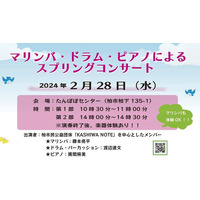 【入場無料】\『マリンバ・ドラム・ピアノによるスプリングコンサート』2月28日(水)開催/ in たんぽぽセンター