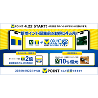 【 4月22日サービス開始「青と黄色の『Vポイント』」誕生記念 】TポイントとVポイントがお得に貯まる4か月「カウントダウン祭」を1月9日より開催!