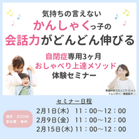 『気持ちの言えないかんしゃくっ子の会話力がどんどん伸びる 自閉症専用3ヶ月おしゃべり上達メソッド 体験セミナー』お申し込み受付開始
