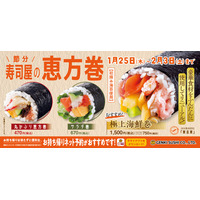豪華食材をたっぷり使用し「極上海鮮巻」がリニューアル!おひとり様需要に対応しハーフサイズもご用意!魚べい自慢の『恵方巻』全3種を10日間限定販売