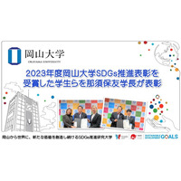 【岡山大学】2023年度岡山大学SDGs推進表彰を受賞した学生らを那須保友学長が表彰