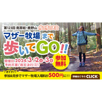 マザー牧場を目指して歩くウォーキングイベント!「第123回 マザー牧場 歩け歩け大会」3月2・3日の2日間限定開催!