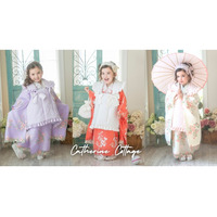 着物をワンピースにアレンジしたことでご自宅でのお支度が可能になった、キャサリンコテージオリジナルの3…