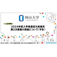 【岡山大学】2024年度入学者選抜欠員補充第2次募集の実施について(予告)