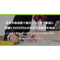 能登半島地震で被災した子育て家庭に総額1300万円分の学校外活動費を助成 ~4/15から5/31まで利用者を募集