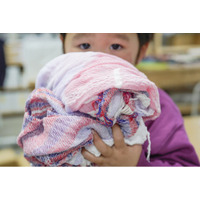 3歳児健診でtamaki niimeのショールをプレゼント!スタートから3年、1000枚に達しました