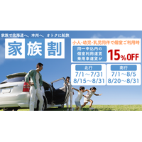【新日本海フェリー】お子様同伴で家族全員の個室運賃と乗用車が<15%OFF>!オトクに船旅へ『家族割』発表!