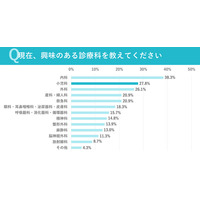 興味のある診療科「小児科」が2位、前年3位からアップ 理由は「子どもが好きだから」が圧倒的に多く8割以…